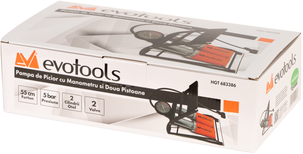 Fiabilă, rapidă și ușor de folosit, pompa EvoTools este alegerea ideală pentru umflarea eficientă și sigură a oricărui tip de roată sau obiect gonflabil.