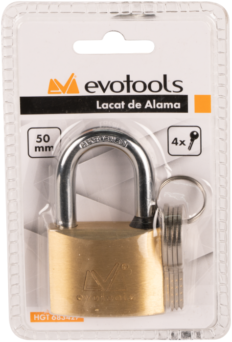 „Lacăt de alamă 2057, cu corp din alamă și fier, oferind durabilitate și securitate ridicată. Include 4 chei, fiind ideal pentru protejarea ușilor, porților sau dulapurilor în diverse aplicații casnice și industriale.