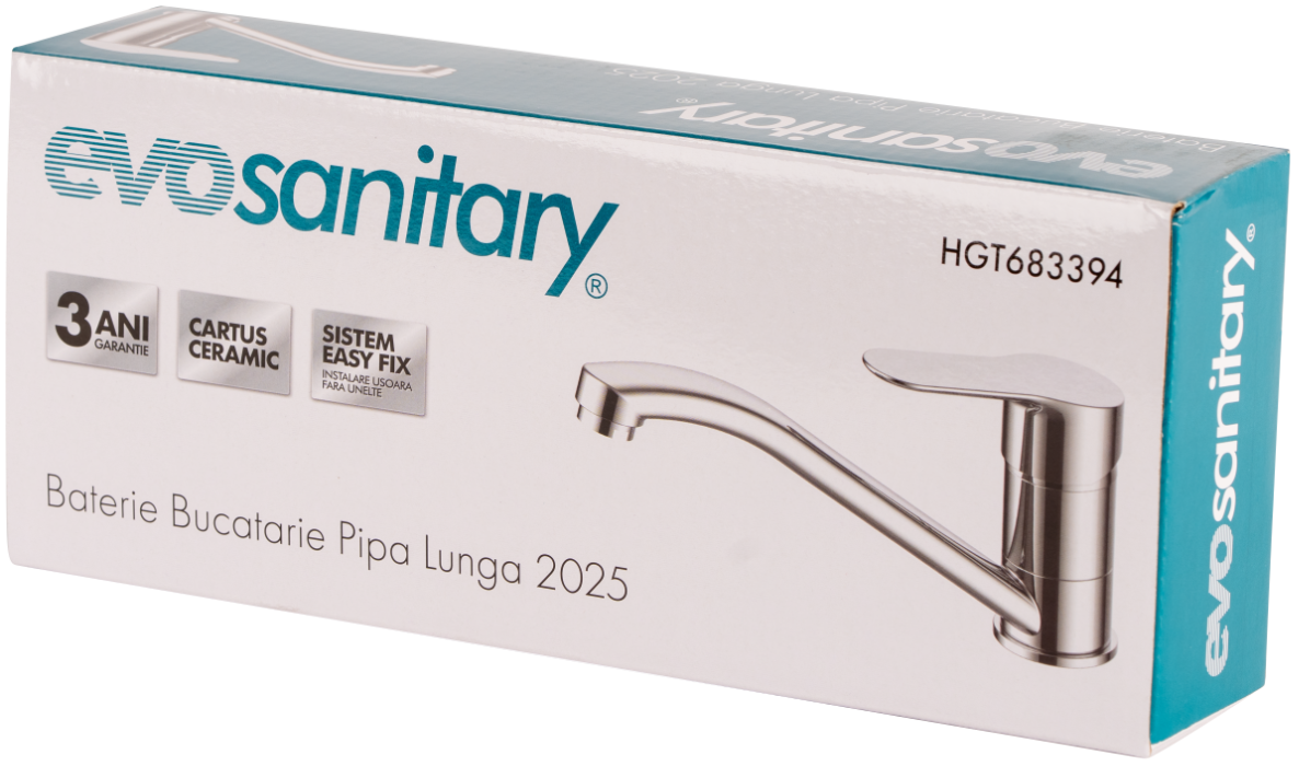 Este echipată cu un cartuș ceramic de 35 mm. Conexiunile flexibile de 400 mm, din oțel inoxidabil, sunt prevăzute cu piuliță de 3/8” și inel de etanșare, pentru o montare sigură și fără scurgeri. Sistemul de prindere Easy Fix face instalarea rapidă și stabilă.