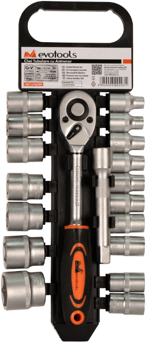 Setul de chei tubulare cu antrenor marca EVOTOOLS PROFESIONAL, este un set de o calitate superioara, fabricat din otel CrMo440 aliat cu CrV 50BV30,ce garanteaza o calitate excelenta a produsului si o utilizare durabila. Dimensiunea prinderii este de 1/2“.